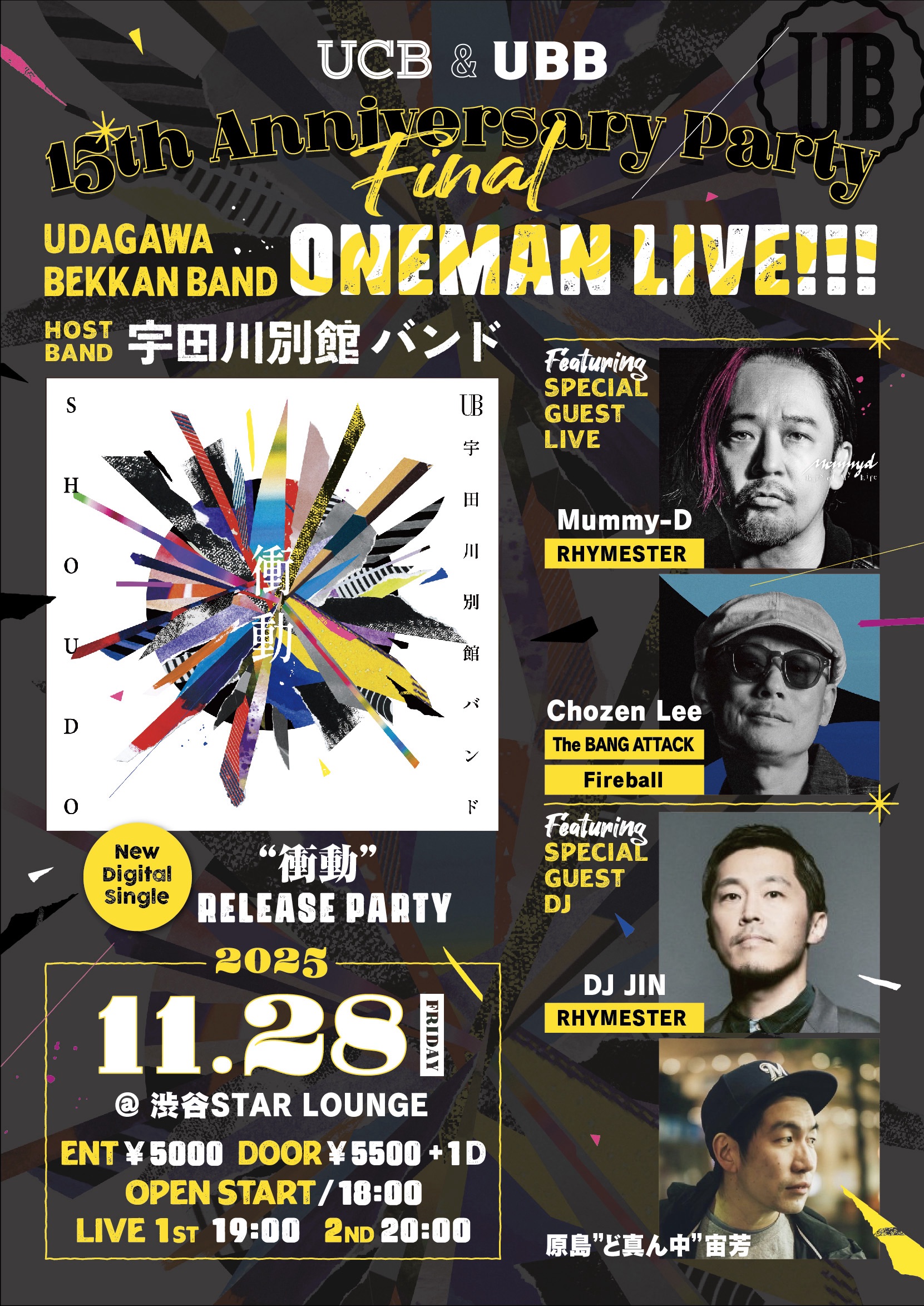 【 UCB&UBB 15th Anniversary Party Final “宇田川別館バンドOneman Live!!!” New Digital Single “衝動”Release Party 】
